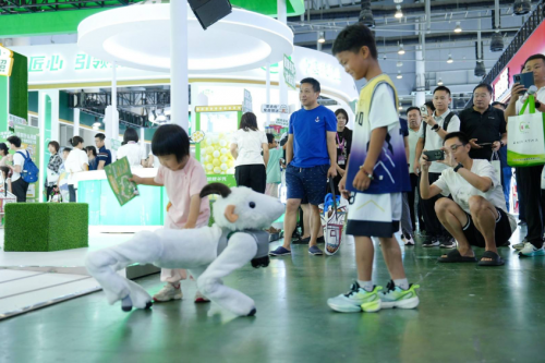 如果说篝火与歌舞表演通过文化温度搭建了盛健羊乳与嘉宾之间的情感桥梁,那么科技赋能的展示环节则成为品牌实力的关键佐证。在“咩咩来拍照”、“咩咩喝羊奶”、“咩咩蹦高高”、“咩咩投投乐”等互动项目中,首次亮相的盛健羊乳“AI科技智能机器羊员工”凭借其精准的应答与灵动的交互,成为全场焦点,也成为嘉宾深入了解盛健羊乳全产业链科技内核的一个重要创新载体。