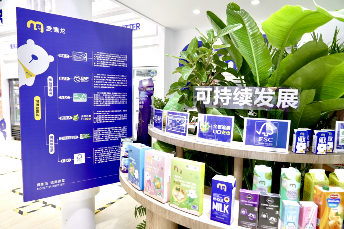 麦德龙此次的进博之旅,也深度契合了绿色进博的主题。在今年展台上,麦德龙特别设置“可持续发展专区”,系统展示了麦德龙的可持续发展战略。比如麦德龙自主开发的获得可持续认证的麦咨达可追溯产品,经海洋管理委员会认证(MSC)或最佳水产养殖规范认证(BAP)的产品,以及经森林管理委员会认证(FSC)的绿色包装产品。麦咨达可追溯系统可实现产品“扫码溯源”,例如获得MSC认证的麦臻选大西洋真鳕鱼颈背肉,源自北极圈深海野生捕捞,经扫码可查看产品的源头信息、生长过程、工艺流程、物流信息及可持续信息等。