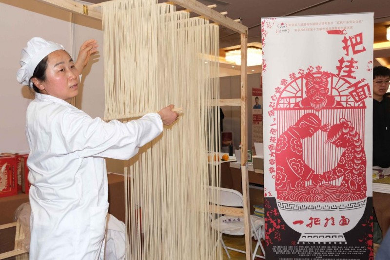 非遗传承人现场展示手工空心挂面技艺